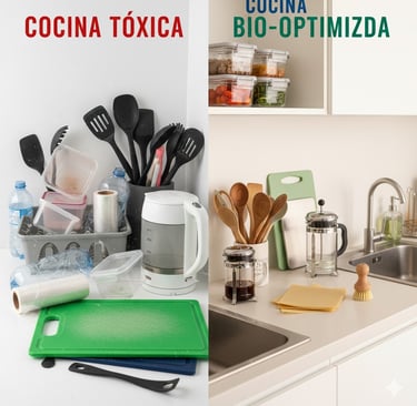 Eliminar el plástico de la cocina no es solo una tendencia ecológica; es una necesidad de salud hormonal. Los disruptores endocrinos (como el BPA y los ftalatos) se filtran en los alimentos al calentar o rayar utensilios de polímeros. En esta guía, analizamos cómo bio-optimizar tu cocina con 10 cambios estratégicos.